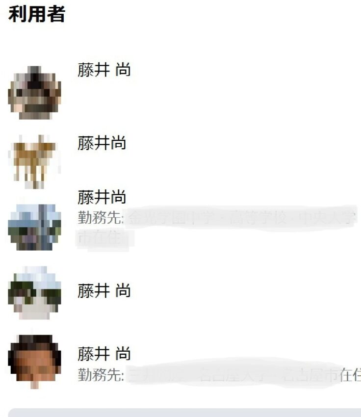 同姓同名アカウントが複数ヒットしましたが、