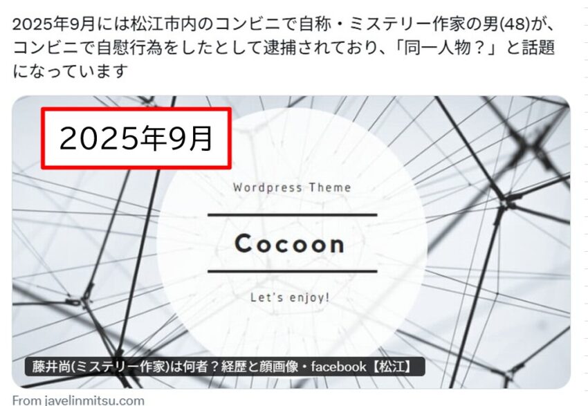 島根県松江市在住、48歳の藤井尚氏は「ミステリー作家」を名乗りつつ、SNS上での活動や不審な行動が注目を集めています。