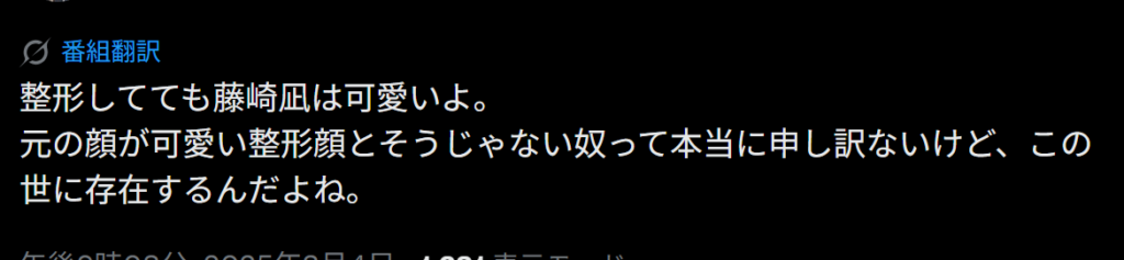 では藤崎凪の整形疑惑に世間の声にはどんな声があるのでしょうか?