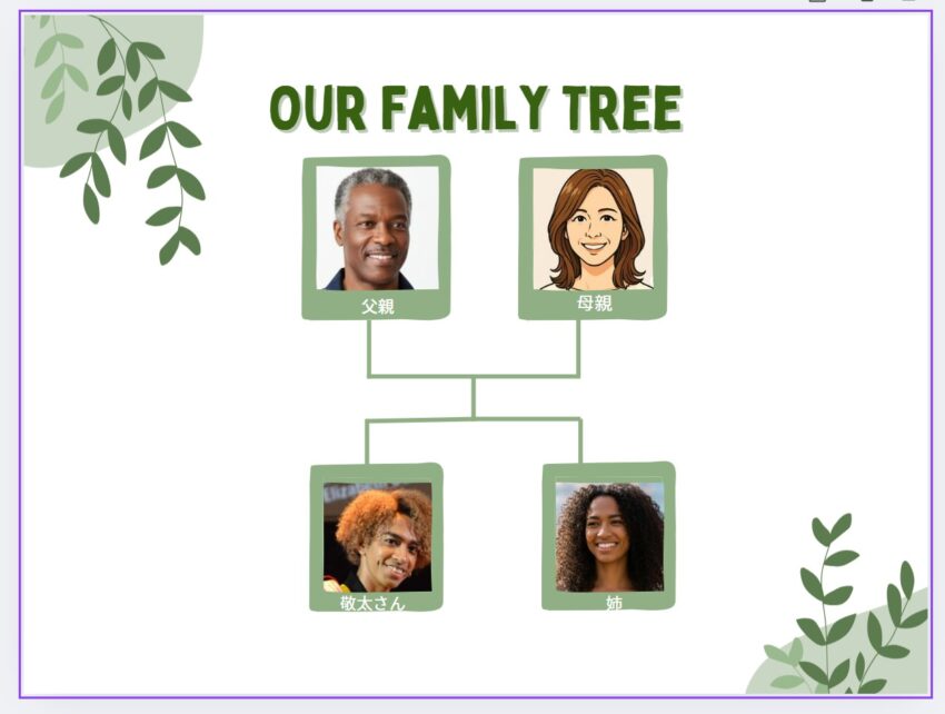 日本人の母を持つハーフで、2歳上の姉との4人家族。