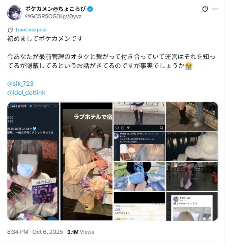発端は暴露系YouTuber・ポケカメンさんによる「最前管理オタクとの交際疑惑」投稿。