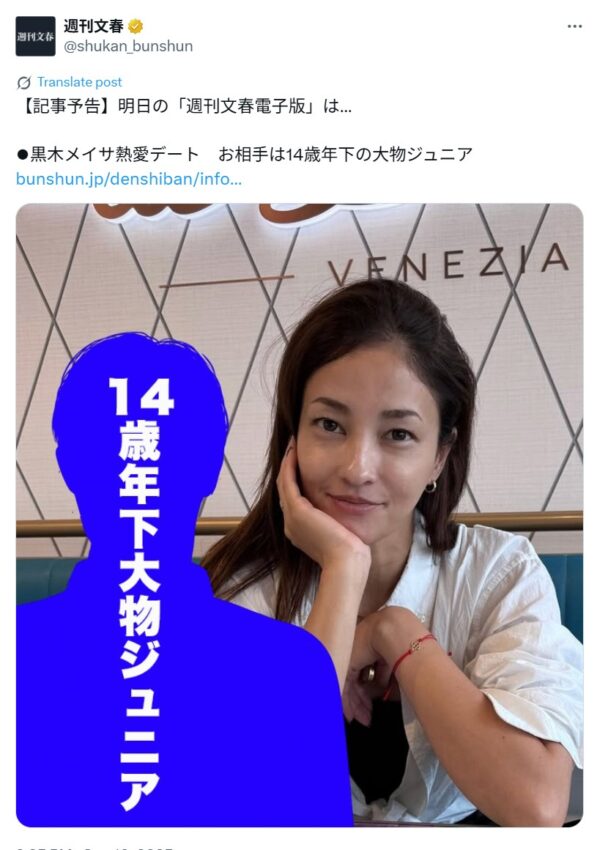 週刊文春によると、黒木メイサさんが熱愛デート?との記事が投稿されておりましたが、