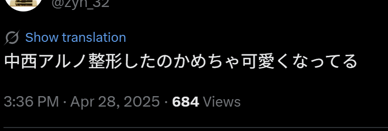 中西アルノさんに関して「整形した?」「顔が変わった?」「頬骨削った?」といった関連ワードがネットで見られますが、