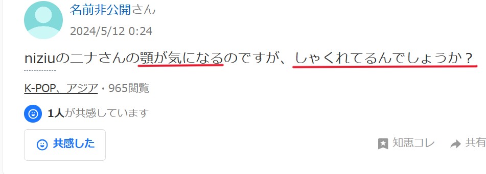 またネット上では、niziuニナの”顎がしゃくれている”のではないか?