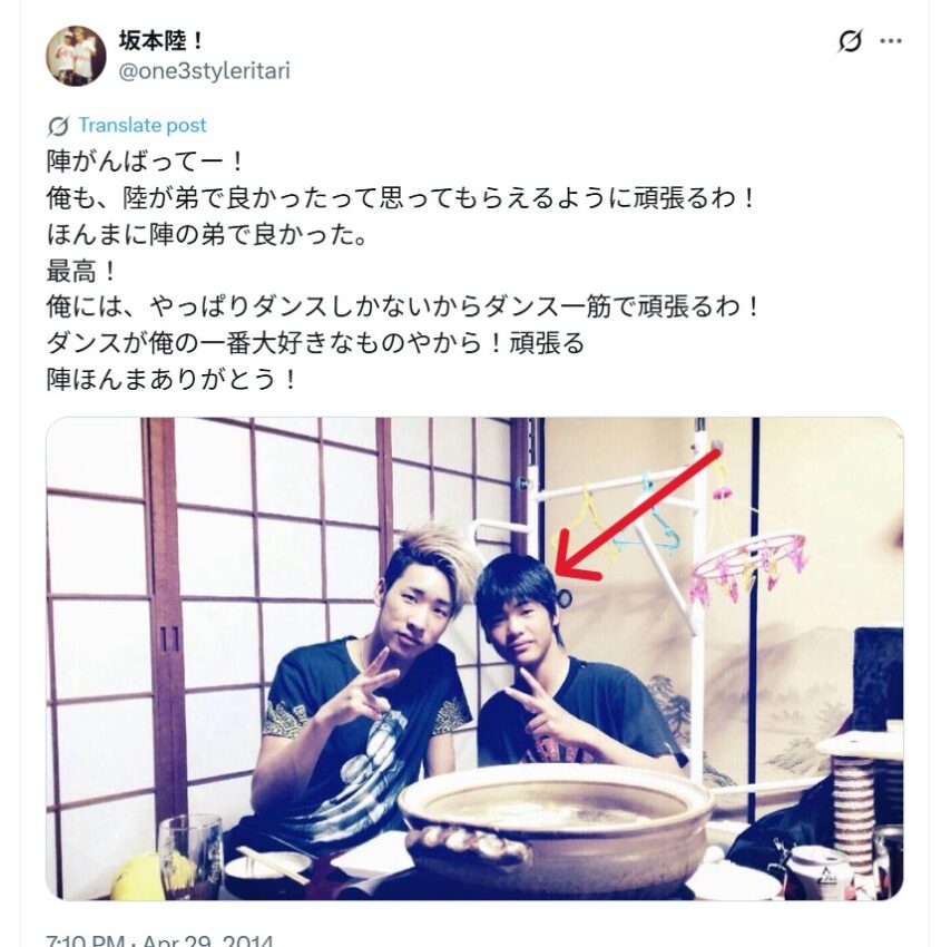 坂本陣(RANPAGE)はイケメン3人兄弟!