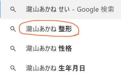 ただ瀧山あかねで検索すると【整形】というキーワードが出現します。