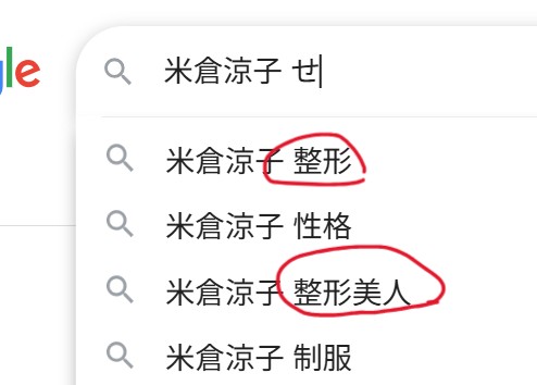 ただ米倉涼子で検索すると【整形】というキーワードが出現します。